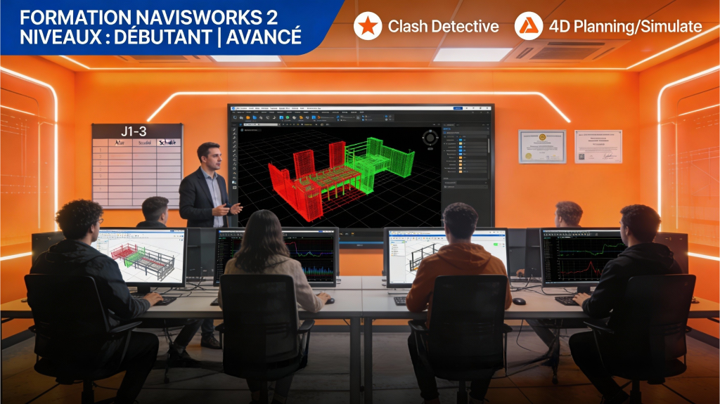 La formation Navisworks est idéale pour la coordination BIM et la gestion des conflits entre maquettes.