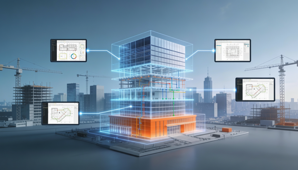 Revit est un logiciel de modélisation BIM développé par Autodesk. Il permet de créer une maquette numérique intelligente intégrant l’ensemble des données d’un projet de construction. Contrairement aux outils de dessin 2D, Revit associe chaque élément du bâtiment à des informations techniques, géométriques et quantitatives.